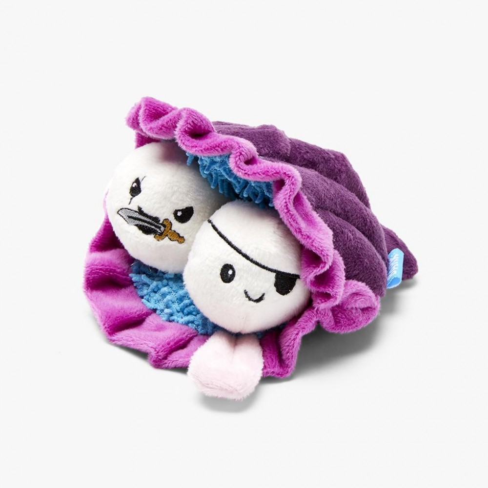 Crazy Crinkle shell is lined in long fluff and houses two squeaky, removable pearls. Yes, we know clams don't have pearls...but, we have a feeling your dog will suspend their disbelief.